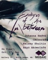 By: - Oct 16th, 2025Distancing itself from apocalyptic rhetoric, the in\between reminds us that ends and beginnings coexist, ecologically. The exhibition brings together four artists — Johanna Hedva, CAConrad, Kelsey Shultis, and Bayo Akomolafe — whose work collectively moves across and between forms — drawing, painting, sculpture, poetry, sound — in an embrace of pluralities, thresholds, and portals.