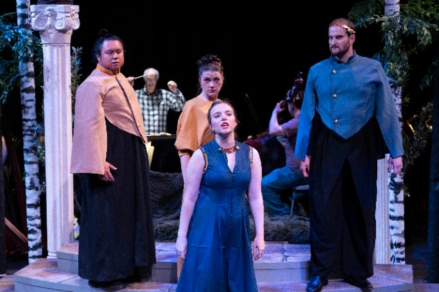 As the mischief-making protagonist Oberon, the King of the Fairies, Kyle Tingson displays a rare, honey-like, easy-sounding countertenor voice that sets the standard and tone for the other artists. Another standout is tenor Kevin Gino as Lysander who not only displays a wide vocal range but best exemplifies the other compelling aspect of all of the performances, and that is fine acting. Gino visually and emotionally expresses with the fine detail expected from a straight actor.