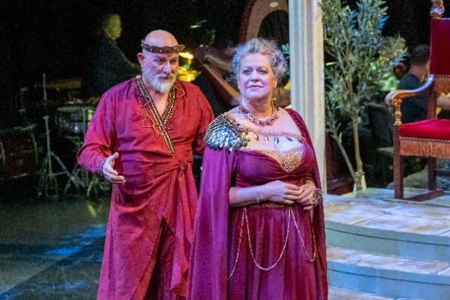 The other male voice of note is a local favorite with a strong North American resumé, and that is bass Kirk Eichelberger as Bottom. His powerful, mellifluous voice is a house filler under normal circumstances, but in the intimate surroundings of this production, there’s no challenge. This intimacy, performed on a front-row-level thrust stage and only several rows of seats on each side offers an immediacy that makes for a very involving personal experience.