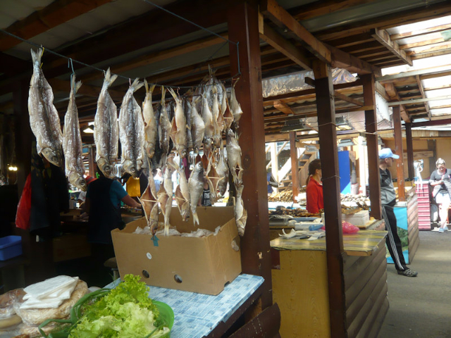 A lively open-air market is where locals buy smoked or cured fish. The stalls, run as family businesses, all seemed to be selling the same type of fish, called omul and native to Baikal. Smoked omul, which looks like a gigantic sardine and is a favored accompaniment to Russian vodka, hung in bunches from the rafters of the stalls. Other sections of the market carried produce and local souvenirs made by Buryats, a northern subgroup of the Mongols and the region’s largest indigenous group, speaking its own dialect. I left the market with an omul-shaped magnet in hand.