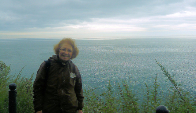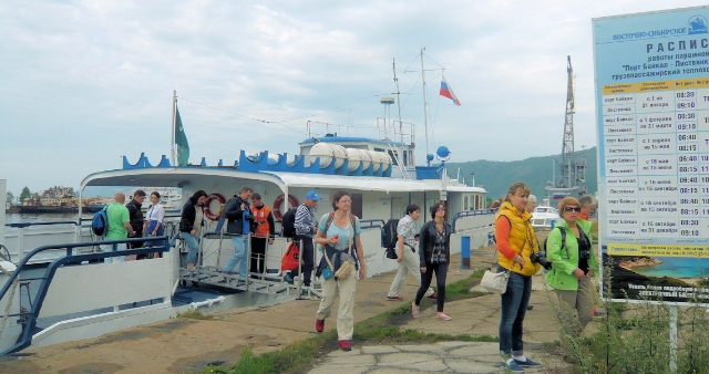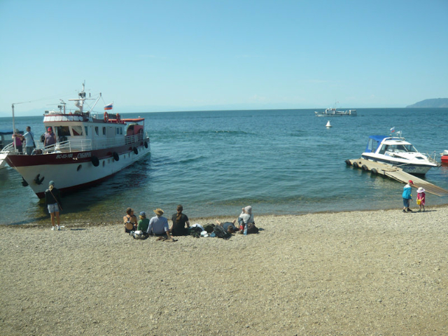 After a delicious fish lunch, we left for a boat ride, passing, on the way, people strolling or sunning by the lake, which has a summer surface temperature of 12-14° C. Climbing a high ladder to the boat, our group of ten filed onto deck, where it was quite breezy, requiring me to don my windbreaker with hood. As we cruised, passing by leisure boats and cargo ships, the scenery along the shores changed from timber houses with steep roofs to industrial development, as over 300 rivers and streams flow into Baikal, which harbors large deposits of minerals. In 1996, UNESCO declared the lake a World Natural Heritage Site, to control the exploitation of its valuable minerals and energy sources.