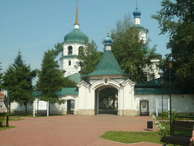 Near the entrance of the Znamensky Convent is a monument to Admiral Alexander Kolchak, who fought hard against the Bolsheviks. Erected in 2004 despite objections, the imposing structure stands on a pedestal, depicting in profile a red army soldier on the right and a white army soldier on the left, staring each other down guns in hand. Znamensky is an Orthodox convent established in honor of the Mother of God, Znamenie, in 1658. Secluded among trees, the grounds feature graves of historical figures. Next to the convent is a stone church, built in 1762, which has a beautiful interior full of icons and religious paintings. All churches were closed during Soviet times and icons destroyed; many have now been replaced.