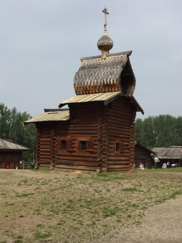 On our final day in Irkutsk we visited Taltsy, an open-air ethnographic museum about an hour’s drive from the city. The museum has an impressive collection of 17th and 18th-century wooden houses that have been relocated here due to flooding during dam construction on the Angara. The wealth of Siberian wooden architecture on display ranges from quaint churches to houses constructed with thick beams and hand-carved ornamentation, along with farm tools of the period. The museum is still expanding its collection as houses become available; most are open to visits. In one of the churches we were treated to Russian Orthodox choral music sung by four members of the choir. Their rich, deep voices inspired me to get a CD of their music, in addition to my parting purchase of a lovely birch basket from the museum shop.