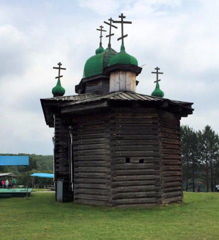 A short distance away is the Russian Orthodox St. Nicholas Church, built in the mid-19th century by a merchant, as he had survived a storm crossing Lake Baikal and, according to local legend, wanted to honor the patron saint of sailors and fishermen. The sanctuary of the all-timber church is covered from wall to wall with icons. During our visit, it was crowded with families waiting in line to have their babies blessed, so we could only see the interior from afar.