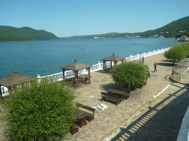 Our guide Ksenia, a petite, attractive young woman, met us at the exit gate and led us to a white van, explaining that we would be driving to Listvyanka, a village 65 km. away on the western shore of Lake Baikal, deferring our tour of Irkutsk until after our return to the city on the Trans-Siberian Railway. After a little over an hour on the road, we arrived at the Krestovaya Pad Hotel, our home for the next two nights. Feeling hungry, I settled for a bowl of borscht at the hotel’s restaurant and, shortly thereafter, quickly fell asleep.