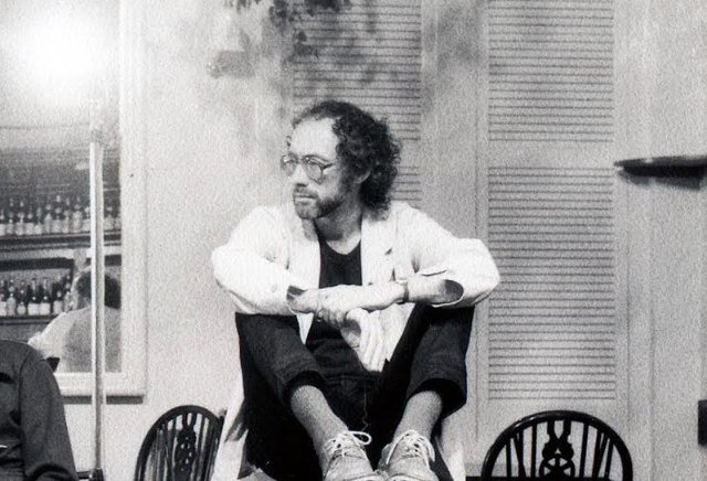 Greg: The rehearsing was an interesting experience. He had a specific vision of how the poems should be spoken, which my acting ability was not achieving. Eventually, his solution was that I not only memorize the lines of poetry and the staging or blocking of my movements (which was relatively easy), but I also had to memorize a whole host of ‘dots’ which he inserted everywhere in the script between the words: one dot was a short pause; two dots was a medium pause, and three dots was a long pause. He was very dedicated to that technique. We worked on it for days, but I found it impossible. It felt stilted. Nevertheless, it was great performance research for me. It eventually led me to the more stripped-down, natural approach to acting I took to my theatre class and to future productions.