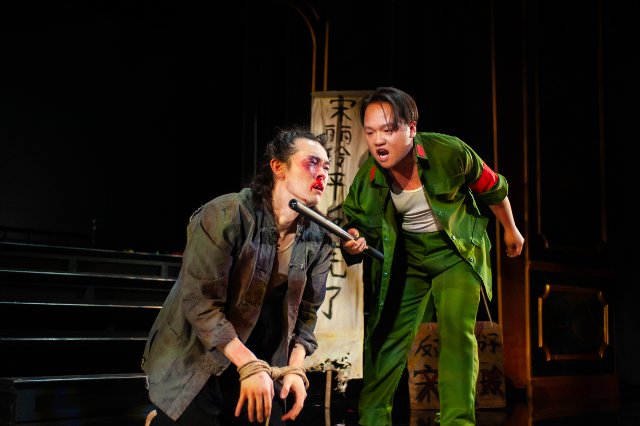 The two leads dominate the action. In Dean Linnard’s portrayal, Gallimard’s contradictions come through. Concise in diction and precise in thought, he is still stumbling and ineffectual. Edric Young captures Song’s fraudulence with grace and conviction, playing the modest and shy card to great effect. They both break the fourth wall frequently which enhances the connectedness of the audience with their characters. Supporting roles are well acted, though they are almost all one-note characters. Andre Amarotico is ebullient as the rascally Marc, while Stacy Ross is breezy and smarmy as the ambassador.