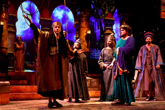 Another potential staging issue concerns the offstage singing of Iokanaan, as any singing behind the scenes can get lost. To begin with, Nathaniel Sullivan as Iokanaan has a strong and agile voice and when bedecked for it, fits the part well (i.e., in real-life he appears more a Clark Kent, but he transforms into a primitive-looking Superman type). The solution is that rather than singing from the wings, he sings from the cistern in the middle of the stage in which he is imprisoned. He also uses a homemade, unamplified megaphone, so that he comes through loud and clear.