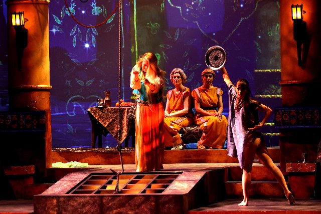 Parisi’s dramatic acting excels in the closing sequences before the beheading when it is unclear whether she regrets her wish and after in her mad scene. Conversely, some early missteps with curious actions and posturing by her and others seem somewhat comic and break the dramatic trance.