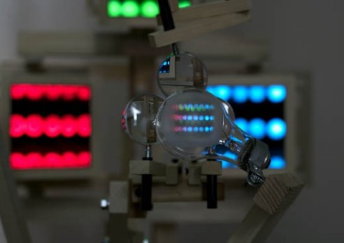 Among our gallery stops was the Zieher Smith exhibition of Mike Womack's curious, whimsical sculptures. Roughly constructed machines that explore optical phenomenon, they felt like something that Tim Hawkinson or Rebecca Horn might create after reading Isaac Newton's "Opticks." The centerpiece of the exhibition entitled "Metronome" is a large and loud machine with rapidly spinning mirrors that create the illusion of a wave of light. At once frightening and mesmerizing, the piece rumbled like a freight train when running. The other works in the show seemed delicate and contemplative in contrast to the bravado of "Metronome".