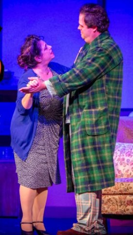When Jack enters the house, he looks weary, annoyed, and disappointed. He works long hours cutting women’s raincoats, and you sense he wants something more from life. As Jack, Bressler delivers a multi-faceted, credible performance, moving smoothly between weariness, disappointment, anger, guilt, and sincere regret. He raises his voice to express his frustration with Stanley, and at one point, the two stand almost nose to nose in confrontation, with Eugene serving as the peacemaker. A scowl forms on his face as he listens to his sons’ sketch, which clearly pokes fun at their family. Bressler varies his voice, sounding softer, defeated, and genuinely sorry during less intense moments.