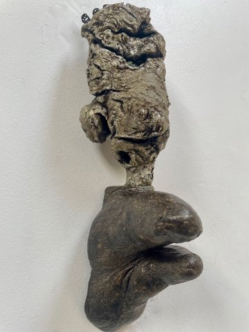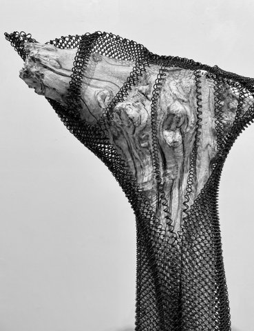 Boston Sculptors Gallery presents Leslie Wilcox’s solo exhibition FIREBRANDS, the third in a series of shows contending with the cascading global climate catastrophe. Working with weather-beaten driftwood from the beach and forest, Wilcox petrifies, gilds, and patinas the wood before adding metal screening, providing a protective armament against further damage and destruction.