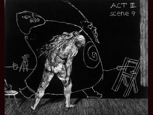William Kentridge, the South African artist, filmmaker, theatre and opera stage designer is the 2012 recipient of the Elliot Norton Prize. His drawing-based art practice uses primarily charcoal, a touch of blue and red pastels, printmaking as mediums and age-old techniques to create often fiercely political and cutting edge work. The basics of South Africa’s socio-political condition and history must be known to grasp his work fully. He is a visual chronicler, much the same as artists such as Francisco Goya and Kätheh Kollwitz.
