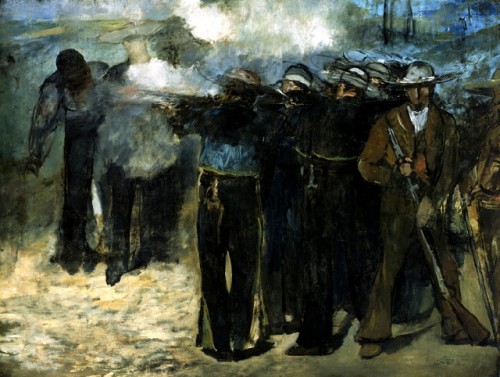 Also from the MFA collection is the masterpiece "Execution of the Emperor Maximilian," 1867, by Edouard Manet. It is the most sketchy of the several works that were inspired by the execution of the French puppet in Mexico after Napoleon 111 withdrew forces needed to fight the Franco Prussian War which ended in disaster for France. The Manet painting was inspired by Goya's "Executions of the Third of May, 1808." It has been some time since we last saw the Manet hanging at the MFA as it is often on tour. We paused to absorb its brilliant, brushy, sketchy passages. Observing how he overpainted French military caps and transformed them into the sweeping rhythm of Mexican sombreros.