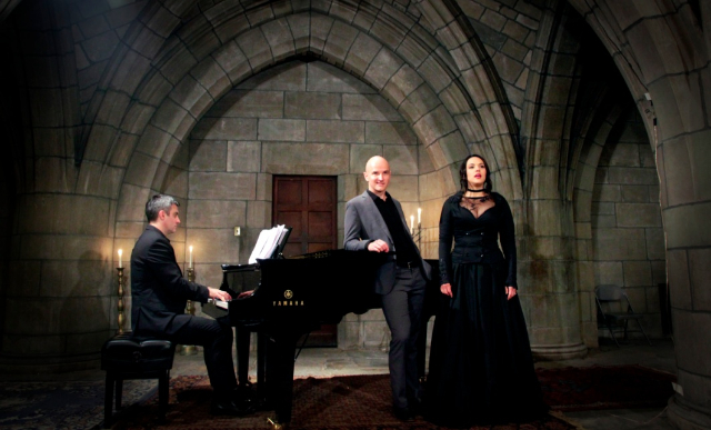The air is expectant in The Crypt as Kevin Puts takes his seat at the piano to accompany Daniela Mack in moving lullabies by Benjamin Britten. Mack sweeps down the stairs and into the consecrated arches in an Edith Wharton dress, black from head to toe with puffed sleeves and a tight waist. She could have stepped from a carriage in The Age of Innocence, but she is not innocent at all. Mack has the wise sensibility of another Wharton character, Judy Trenor. Fay Eva is credited with Mack's perfect costuming.