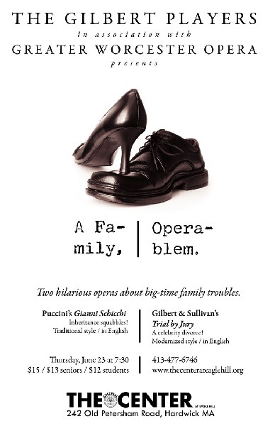 Greater Worcester Opera, the new name for what was once known as Worcester Opera Works experiments this coming Thursday evening, June 23rd by taking their recent performance success of two comic classics out to the hinterlands for an encore. Said designated hinterland is the rural community of Hardwick and the state-of-the-art performance venue at The Eagle Hill Cultural Center.