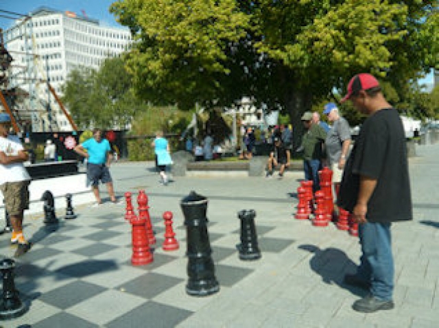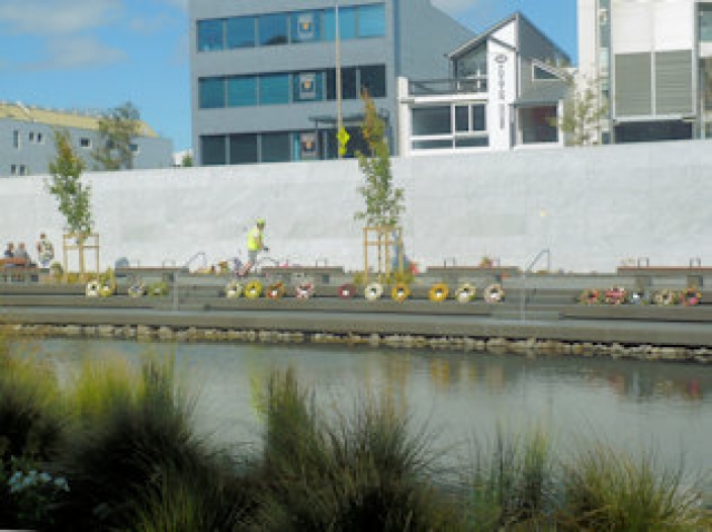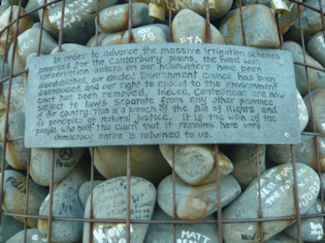 Our brief visit to Christ Church was limited to the town center on foot and then a tour by tram. While fenced-off areas and scaffolding around historic buildings, such as the cathedral, were a common sight, so were contemporary buildings constructed in recent years, showing the resilience and determination of the residents to build anew. Accustomed to construction clutter and noise, residents enjoyed the summer’s warm rays in outdoor cafes or playing chess in Cathedral Square. An environmental protest against a proposed irrigation system took the form of a tower of stones heaped within a circular wire armature, reminding people of their hard-won conservation orders. The Canterbury Earthquake National Memorial honored those who had perished during the earthquake, with a row of wreaths lining the riverbank.