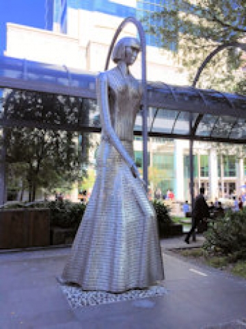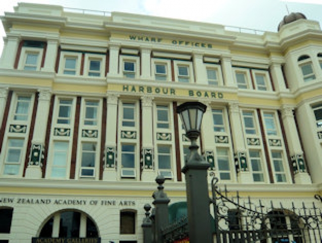 To easily navigate the museum, I was directed to take the elevator to the third floor and begin in the attic, where there are set pieces for a Wellington film, a “time machine” traveling through a colorful past, and a tribute to the building’s architect and architecture. Using the stairs, I then descended to the second level to view a multi-media presentation of ancient narratives in addition to carved and woven stories. After viewing the city’s maritime history and a map of its harbor on the first level, I descended to the ground level to browse the museum shop. Not far from Wellington Museum is the New Zealand Academy of Fine Arts, in another historic building, which formerly housed the wharf offices. The academy had a special exhibition of student works along with works by teachers. All were available for purchase, with some already marked as sold.