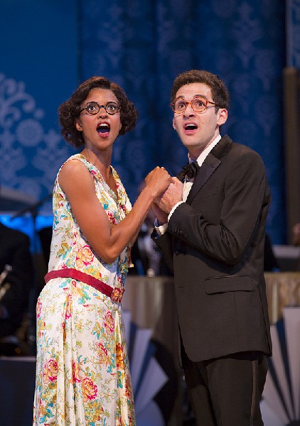 As we have come to expect from Broadway quality WTF productions the curtain parted to reveal a stunning art deco flavored set by Robin Vest. It comprised a horseshoe shaped grand staircase surrounding the six piece orchestra. There were vertical lunettes with shades which were raised in the second act for an inventive staging of “Watching the Clouds Roll By.”