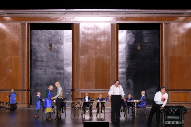 Water journeys are the back story of the drama. We are at sea in Act I. Isolde is sailing to Tristan in Act III. Warlikowski gives us the sea projected in drop down frames filled with floating airborne sea gulls and the rush of water. He drowns the lovers at the opera’s conclusion.