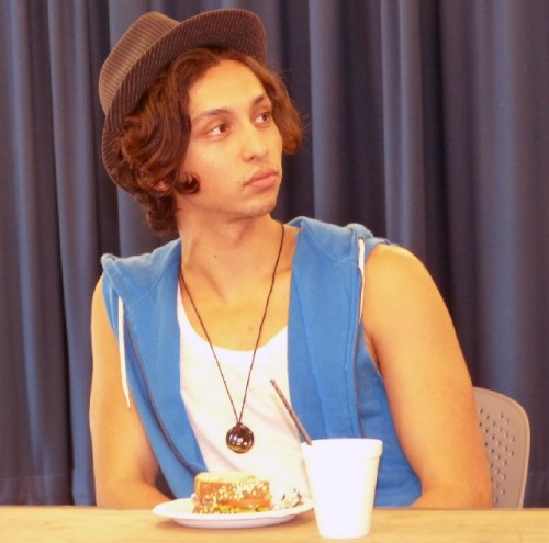 Actors We’re all grappling with the challenges of being seated on the stage on the sides. So when you come on into the space there’s not much to help your imagination. When you are on the sides you have to stay very alive in some capacity. When you cross the boundary into the world you are about to play in it’s there for you. So that’s something that I’m struggling with and thinking about. We are working intimately with the people on stage but in a world that hasn’t been given to us through a set. So making it real is doubly challenging…