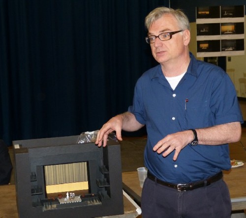 We have two major changes from the norm at Williamstown. One, we are taking out the first four rows of the theater. We are building a platform out. Fourteen feet deep and sixteen and a half feet wide. The play will take place on that platform in the middle of the house. With the audience on the sides. So we’ve moved the stage into the house. To bring it closer and surrounded by audience.