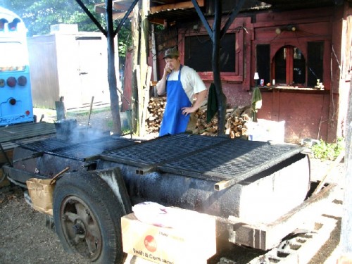 Manning the pit was Chris Parker the son in law of the legendary Curtis Tuff. I asked if there was a connection with the Curtis BBQ up in Chester. "That's me actually," Tuff said. "I cook up there but come down here and help out. Curtis is 69 now so he only cooks on the weekends. Which is the busy time. Particularly on Sundays when the line is across the lot and down the street. As you can see this is open air picnic style so Curtis closes it in October and reopens in April. Up in Chester I am open year round."