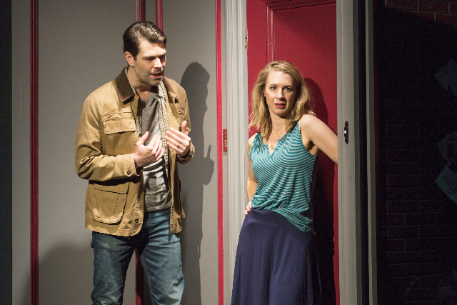 The complicated action is accomplished on a cluttered set, designed by Brian Prather, in the confines of the small stage. It provides the studio apartment of Marrell and Tom, the messy one of Jane, a door to her apartment and hall. Then, with a drawn curtain and piano, a nightclub is created. In the final scene a door is wheeled into Jane’s apartment to create the illusion of a bedroom. That’s a lot demanded of a designer working in a small space with a limited budget.