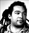 The secret of the strength of the Biblical Samson lay in his uncut hair. An imposing mass of matted, fused, piled up, twirled and twisted rasta dreds is an eye catching feature of a gigantically tall, warm and charming, stunningly bright, and awesomely handsome, soaring comet in the Boston art world, Camilo Alvarez, the twentysomething director of Samson Projects, at 450 Harrison Avenue in Boston’s South End.