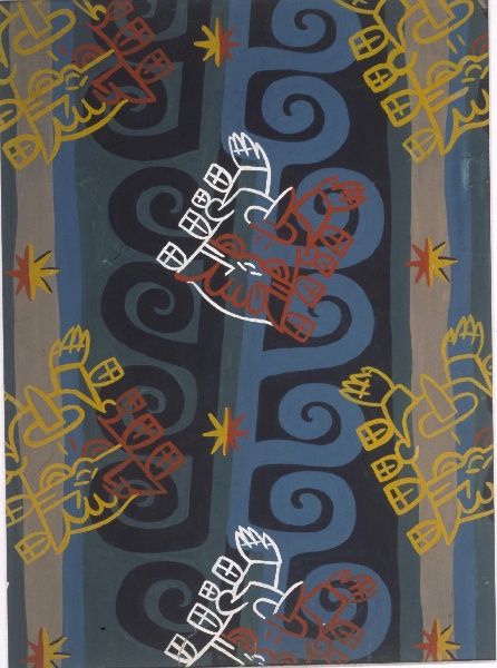 While intensely involved in the difficult process of accepting and rejecting works for an exhibition which is now on view, reception next Wednesday, October 10, 5 to 7 pm, a young woman, Maya Freelon, introduced herself and stated that she had volunteered to help. I enjoyed the company and engaged in a dialogue. Right off I asked if she found the Jones exhibition of interest. She lit up and stated that as an artist of color she knew the work from slides in courses and regarded her as an inspiration and role model. "Some of these designs sold in fashionable stores in