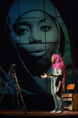 During the second act, in the most compelling scene in the play, indeed its raison d’etre, Intisar looks into a video camera and explains why she wears the veil. Her face is blown up on the screen and completely absorbs an enthralled audience.