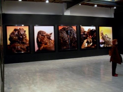 In the dimly lit space of the Yvon Lambert Gallery in Chelsea, simultaneously with its other venue in Paris, there was an installation of super scaled, digital prints of various formations of excrement. Or at least so it appeared. Perhaps the shock artist, Andres Serrano, who has made a career of assaulting the senses, uses some materials with similar color and texture to sculpt and then photograph these formations.