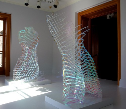 The exhibition of twenty-five works are either part of the park’s permanent collection, on loan, or newly commissioned for the show. Light & Landscape, according to curator Lawrence, was inspired by Alyson Shotz’s stellar Mirror Fence (2003)—a 130 foot stretch of fence whose mirrored pickets reflect the viewer’s every movement, as well as the beauty of the park’s surrounding landscape. Playing with the effects of light are two of Shotz’s angulated, laser-cut, acrylic-ribboned sculptures titled Transitional Objects. Situated in a small indoor gallery, both works rely on light streaming through the gallery’s windows to bring the the spectrum of the sun’s hidden colors to life.