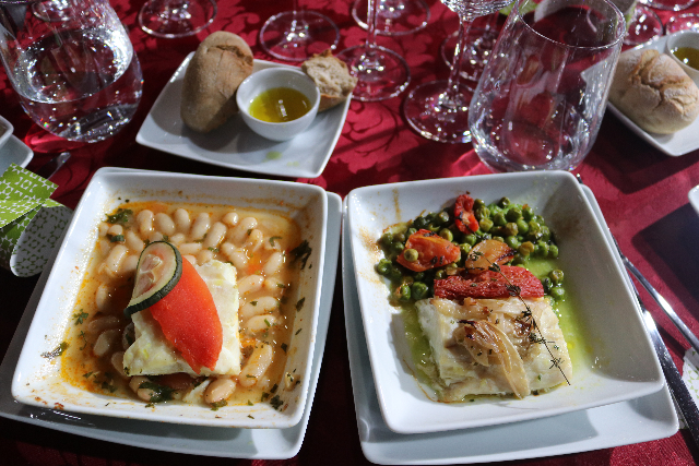The paired fish dishes were Steamed sea bass with peas and fennel salad, by chef Rui Silvestre, Roasted grouper with white bean and Alentejo pork, chorizo stew, by chef Henrique Sa Pessoa.