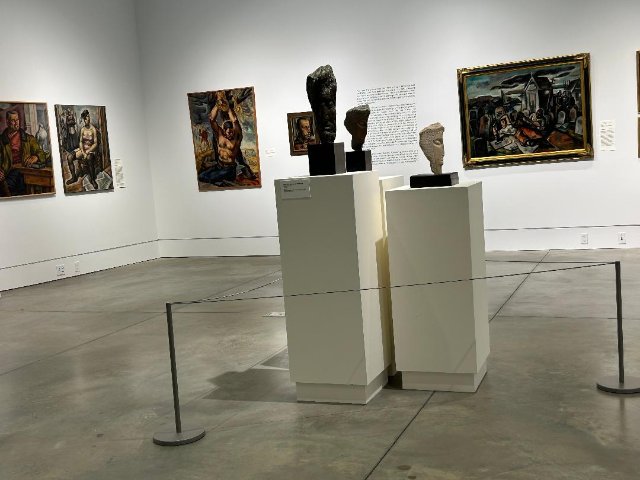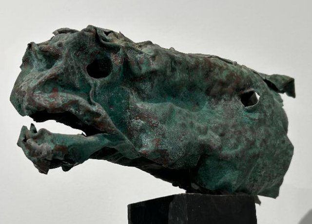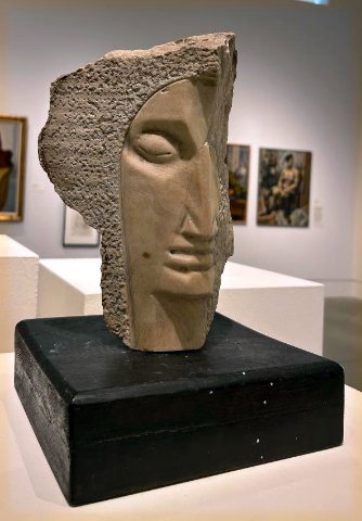 There were examples of sculpture but what we viewed is uncompelling. The jury is still out on this aspect of the oeuvre. There is an anguished horse’s head in hammered bronze. Examples of carved stone heads compare to those of Modigliani.
