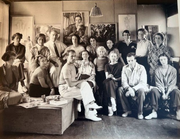 It’s possible that they may have visited earlier but the Romanos came to Gloucester in 1933 and with a few studio moves eventually established roots. In various locations he founded the Romano School of Art. Initially he taught in a schooner docked in Rocky Neck. In 1938 the Romanos purchased the legendary Gallery-on-the-Moors which was built in 1916 (designed by Ralph Adams Cram) for the collectors and gallerists, Emmeline and William E. Atwood. They showed Gloucester’s early modernists. The space housed their school, a gallery, and stage for a variety of performances. It was a great loss for the community when Umberto and a second wife sold the property and left Gloucester.