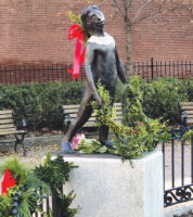 By: - Dec 16th, 2020The late Kahlil Gibran created a sculpture for a mini-park in his South End neighborhood. It has been decorated for the holidays with a festive, bright red bow and flowers.