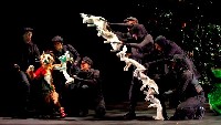 By: - Dec 07th, 2014All eyes are fixed on El Gato, as he virtually vibrates when his slender body is filled with song. Manipulated by three puppeteers, he is a slithering, prancing manipulator himself, entrancing as he bounds across the stage fixing the world to his vision. Puss in Boots is an old tale which holds two morals. One that dress and countenance can carry you far. Puss is a living example. He dons hat and cape and boots and becomes a courtier.